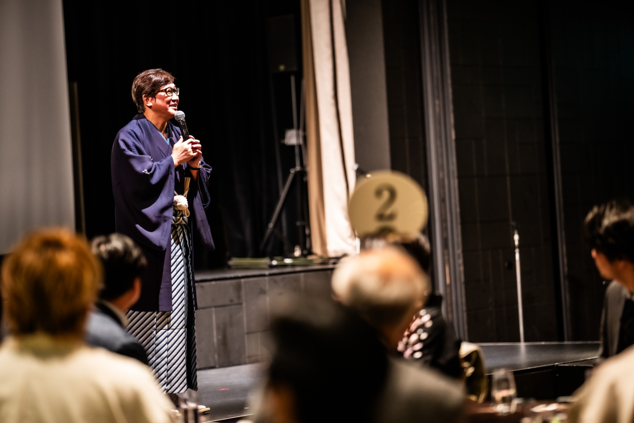そして、毎年恒例の鏡開きで新たな年の幕開けを華やかにお祝いしました。色とりどりの着物を着た会員の皆さんがステージに集まり記念撮影を行うなど、思い思いに懇親のお時間を楽しんでいました。